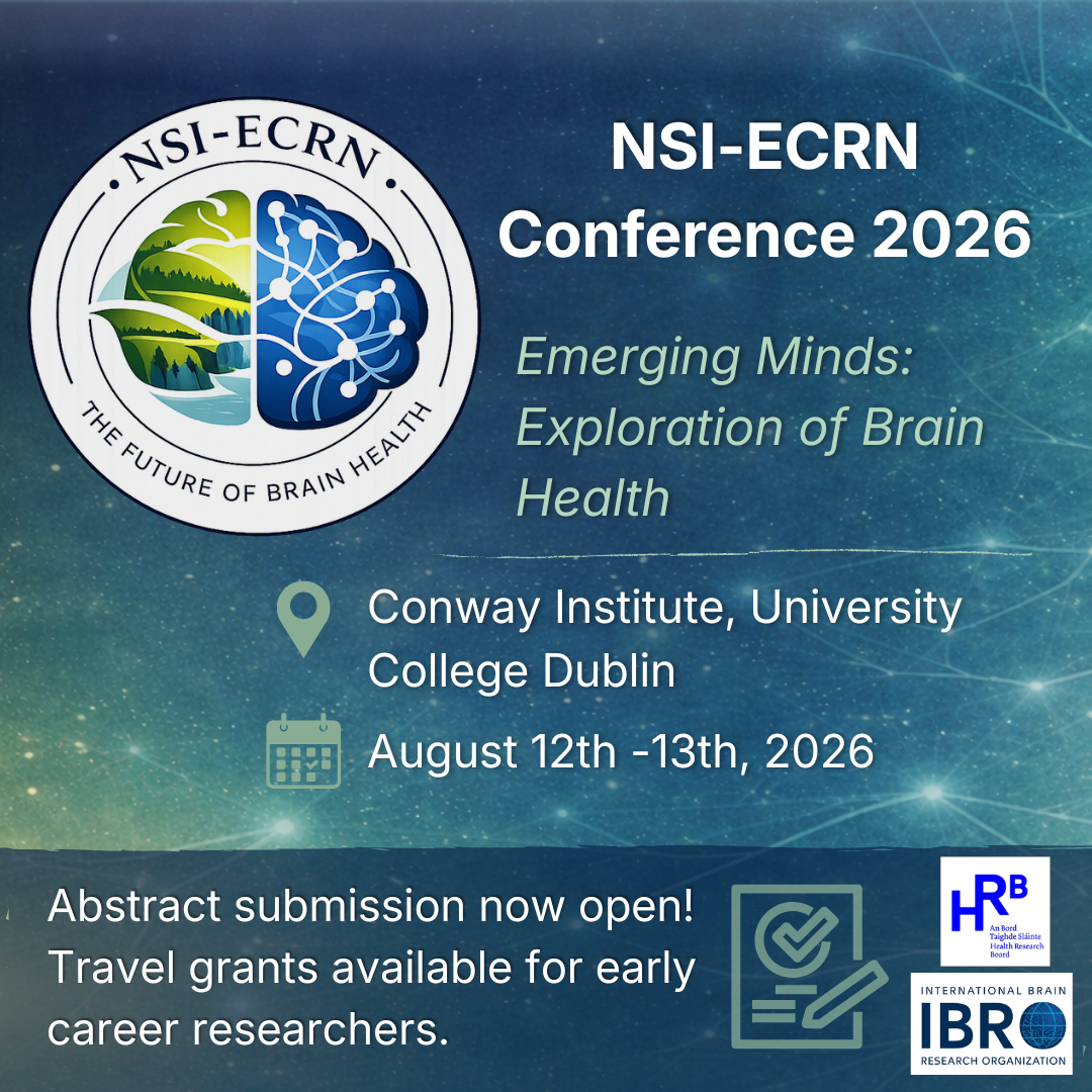 The upcoming 2026 NSI-ECRN Conference, “Emerging Minds, Exploration of Brain Health”, will take place on 12th-13th August 2026 at University College Dublin. This two-day event will bring together early career neuroscience researchers from across Ireland.
